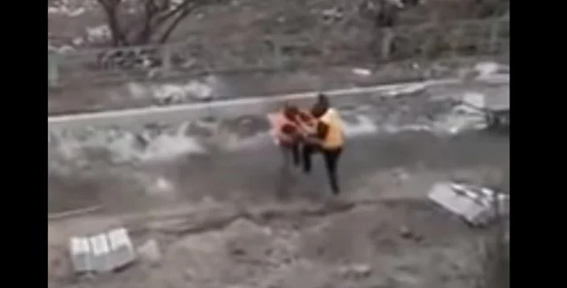 На ролике видно, что двух коммунальщиков растянул третий. После этого мужчины втроем приступили к выполнению своей работы.