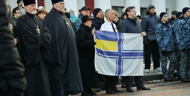 У стен мэрии в Одессе поднят флаг ВМС Украины: его не снимут, пока украинские моряки не вернутся домой