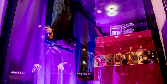 Погружение в атмосферу вечернего аперитиво проходило под светом плазм, декорированных авторскими рамками. Специально для мероприятия команда new media arts studio BLCK BOX разработала видео-контент, отображающий главные источники вдохновения дизайнеров BVLGARI: Колизей, Термы Каракаллы и секретные улочки Рима. Дополнял арт-инсталляцию DJ Стас Тви.