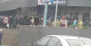 В первую очередь они побежали к прилавкам с товаром по скидкам и в больших количествах набирали себе продукты.