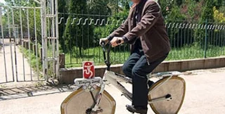 Отставной офицер из китайского города Циндао Гуан Байхуа соорудил и запатентовал велосипед, переднее колесо которого имеет форму пятиугольника, а заднее – треугольника.