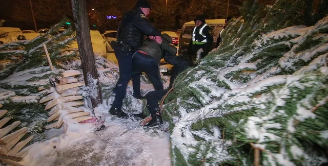 Битва за елку: в Киеве попытка украсть новогоднее дерево переросла в схватку на топорах и ножах