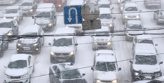 "В такую снежную погоду призываем воздержаться от поездок на собственных авто, чтобы не попасть в пробку или снежный сугроб!", - призвали в МВД.