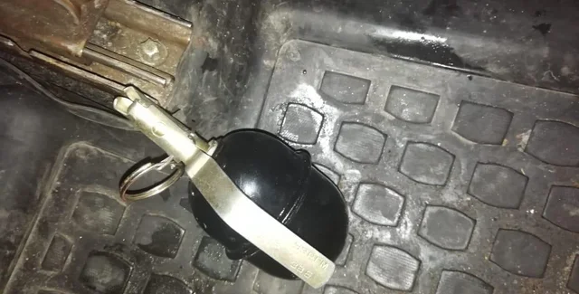 Водитель и пассажир выскочили из машины и вызвали полицию. О том, что граната - муляж, они знать не могли.