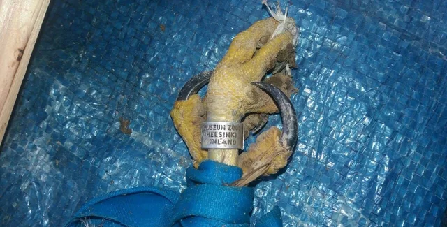 Один из лесников пожалел птицу и забрал ее домой. Он посадил ее в теплую клетку, чтобы откормить и подлечить. На лапе у птицы обнаружилось кольцо, с помощью которого и узнали, откуда ястреб прилетел.