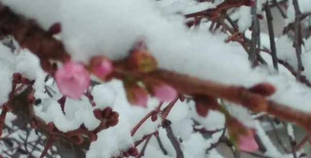 В городе температура воздуха опустилась до восьми градусов ниже нуля, но японская вишня все равно зацвела. Местные жители прозвали дерево неистовым, поскольку оно цветет по три раза за год.