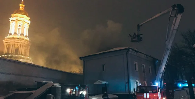 Пожар в здании монастырского комплекса Киево-Печерской лавры, который произошел вчера вечером, полиция расследует ка "поджог"