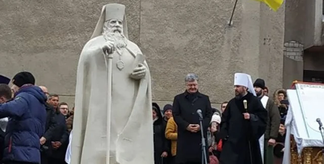 Отмечается, что митрополит Киевский и всея Украины Василий Липкивский возглавлял украинскую автокефальную церковь в 1919-1927 годах. На открытие памятника прибыл президент Украины Петр Порошенко, который привез в город томос.