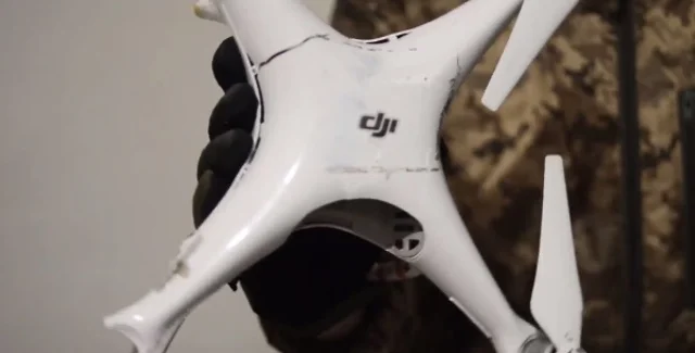 "Российские наемники оснастили обычный китайский дрон фирмы DJI модели "Фантом-4" осколочной взрывчаткой. Кустарным способом они украсили дрон переработанным осколочным выстрелом ВОГ-17 с хвостовиком, напечатанным на дешевом 3D-принтере", – говорится в сообщении.