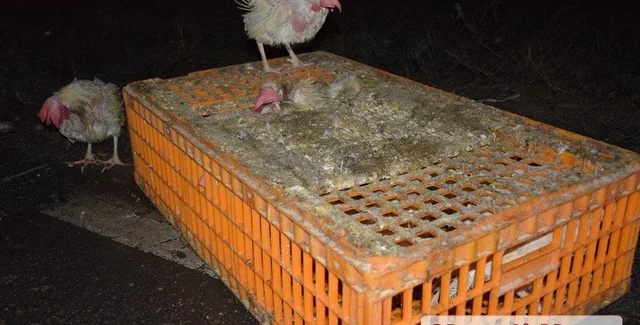 В полуприцепе автомобиля находились 6 тысяч кур в клетках, значительная часть которых рассыпалась по дороге. Часть ящиков разорвалась и куры разбрелись в разные стороны.
