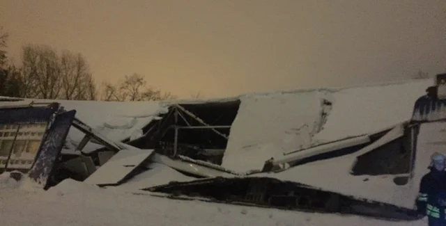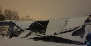 Когда спасатели прибыли на место, то обнаружили, что крыша обвалилась сразу в двух местах. На общей площади 900 м.кв.