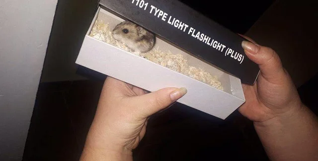 Там оказалась коробка из-под фонарика. А в коробке – хомяк. Записка детским почерком гласила: "Помогите пожалуйста! Не трусить, не переворачивать".