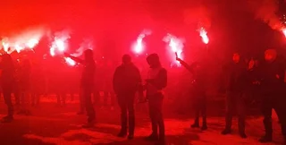 После приезда активисты обстреляли из салютных установок спецкомлекс "Фортеця", где проживает Аваков. Акция проходит из-за задержания активистов на митинге "Кто заказал Катю Гандзюк?".