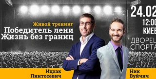 24 февраля в Киеве, во Дворце спорта пройдет 7-часовой тренинг "Победитель лени. Жизнь без границ". На этом мероприятии выступят два топовых мотивационных спикера: Ицхак Пинтосевич и Ник Вуйчич.