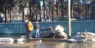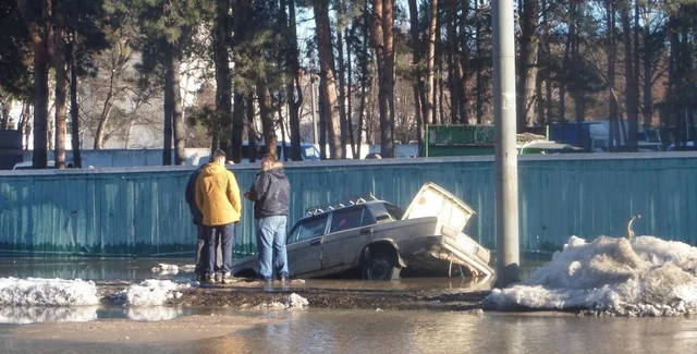 Проезжая часть покрылась водой, автомобили с трудом могли по ней ехать