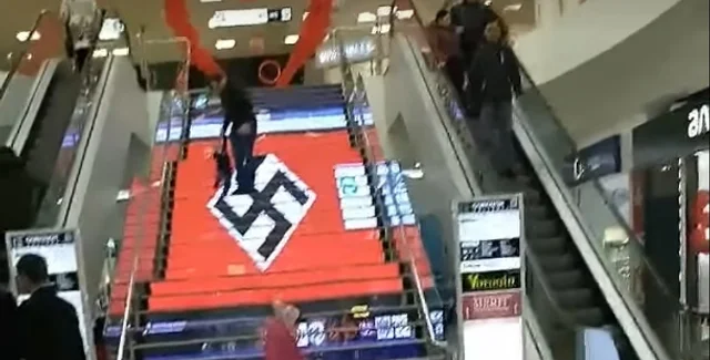 Инцидент в торговом центре произошел 16 февраля. На LED-лестнице внезапно появилось изображение нацистской символики. В ТРЦ сообщили, что стали жертвой хакеров.