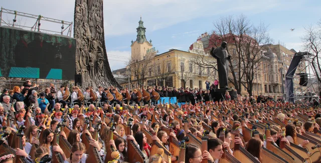 Львовские бандуристы установили рекорд Украины, одновременно исполнив песню на стихи Тараса Шевченко.