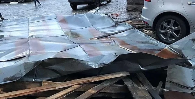 Во Львове шквальный ветер сорвал крышу с жилого дома