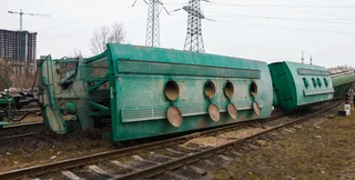 На видео с места происшествия видно, что во время опрокидывания вагоны существенно повредили железнодорожное полотно.