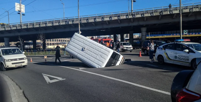 В Киеве на Демеевской площади микроавтобус Volkswagen на ходу провалился под землю. В итоге – образовалась пробка, пишет "Информатор".