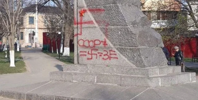 На монументе появились надписи "Зе", "СССР" и нацистская свастика