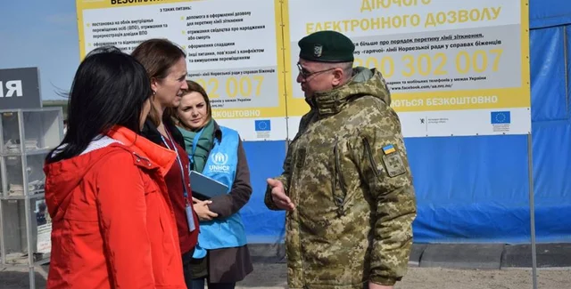 Заместитель главы представительства управления комиссара ООН по делам беженцев Ноэль Калхун посетила пункт пропуска "Гнутово" на Донбассе.