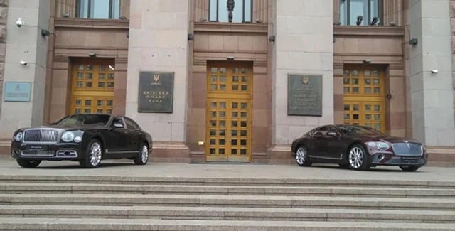 На Крещатике перед зданием Киевсовета поставили новые автомобили Bentley. Машины "приветствовали" гостей Венского бала, который прошел в Колонном зале мэрии. Об этом сообщает topgir.com.ua.