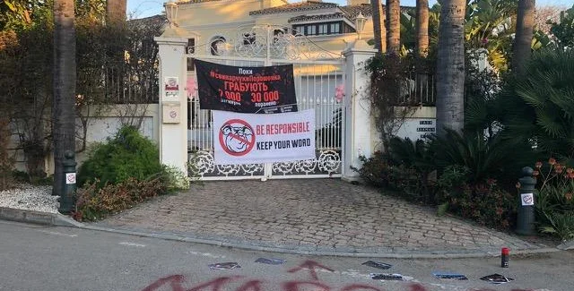 Активисты рассказали, что оба дома находятся на юге Испании, в элитном районе небольшого городка Аталая-Исдабе, где стоимость недвижимости считается одной из самых дорогих на территории Европы. У зарубежного дома президента активисты провели акцию протеста. На заборе усадьбы они разместили плакаты с надписями "Грабят" и "Будь ответственным. Держи слово" (Be responsible. Keep your word).