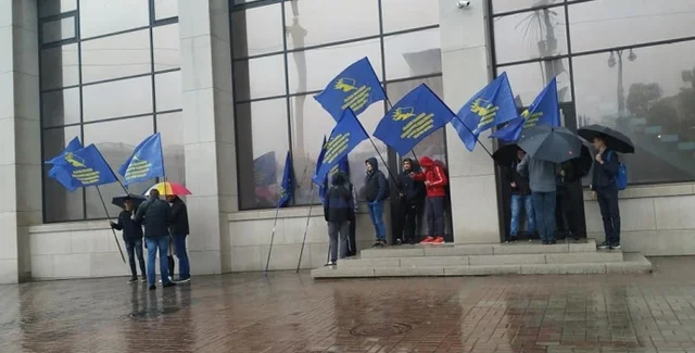 На акцию под стенами Украинского дома собрались представители профсоюзов