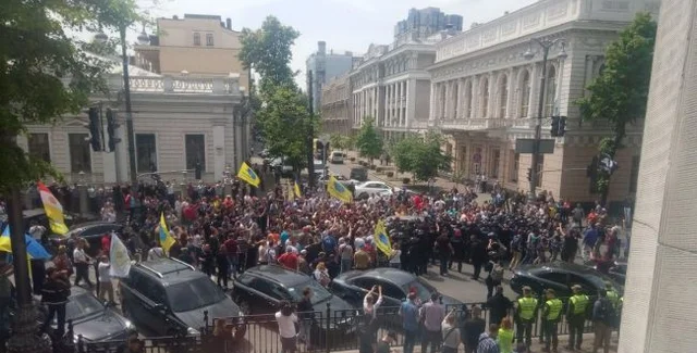 - После этого, 15 мая, в правительственном квартале Киева началась акция протеста владельцев автомобилей на европейских номерах. Активисты требуют отменить акциз на авто, отсрочить введение штрафов, остановить начисление повторных штрафов за растормаживание, отсрочить штрафы за пользование "евробляхами" в превышение разрешенного 30 дневного срока.