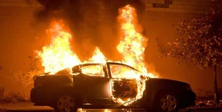 В результате пожара Daewoo Lanos и Mercedes сгорели полностью