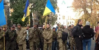 В Киеве, возле здания Администрации президента собрались представители различных добровольческих батальонов и требуют от президента Украины предоставления украинского гражданства иностранцам, воевавшим на Донбассе. Об этом в прямом эфире сообщает информационное агентство ASPI.