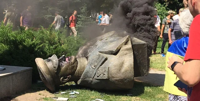 - Сегодня в Харькове активисты националистических организаций повалили памятник советскому маршалу Георгию Жукову на проспекте Григоренко. Участникам акций "Можем повторить" и "Стоп реванш" пытались помешать полицейские.