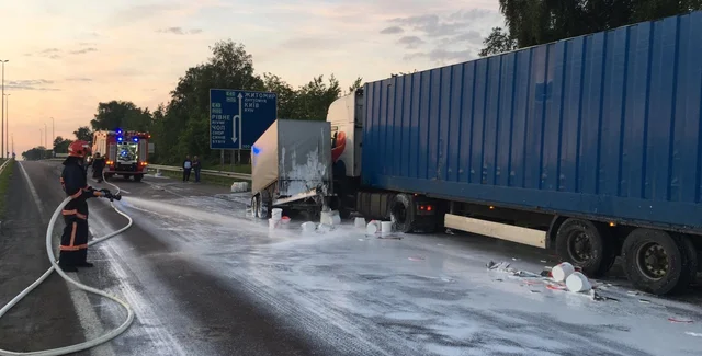 В Ровенской области во время ДТП перевернулся полуприцеп, заполненный клеем ПВА, в результате чего дорогу залило клеем.