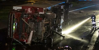Отмечается, что грузовик ехал со стороны Одесского направления по Окружной. Около 2:00 в районе Одесской площади, заезжая на мост транспортной развязки, его резко начало заносить вправо. На своем пути многотонная фура снесла отбойник и вылетела с моста, упав на правый бок. К месту аварии сразу направились патрульные, чтобы помочь водителю. Он остался жив.