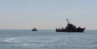 В течение двух суток в одно и то же время – после 21:00 – корабль ФСБ освещает суда Госпогранслужбы Украины зеленым светом.