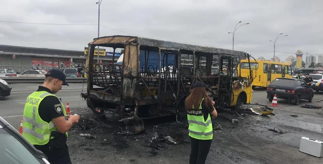 - 15 августа аршрутный автобус полностью сгорел возле киевской станции метрополитена "Лесная".