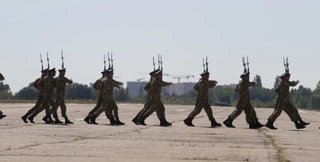 "На взлетной полосе завода Антонов, несмотря на жару, военные и представители других силовых формирований Украины отшлифовывали мастерство строевого шага, отрабатывали сценарий событий и пели гимн – все, чтобы достойно представить свои подразделения на Майдане Независимости 24 августа", – говорится в сообщении.