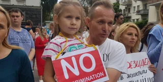 Участники акции требуют не допустить дискриманации невакцинированных детей и разрешить им посещать школы на общих основаних.