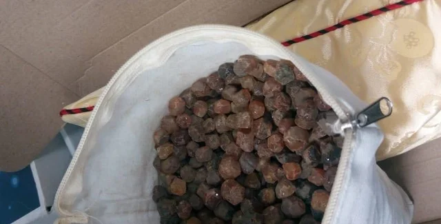 С собой они имели подушки, внутри которых спрятали янтарь. Их задержали в аэропорту Борисполя. В ходе проверки оказалось, что в подушках спрятано более 50 кг камней.