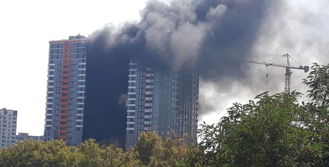 В Киеве произошел масштабный пожар на стройке ЖК "Бережанский".