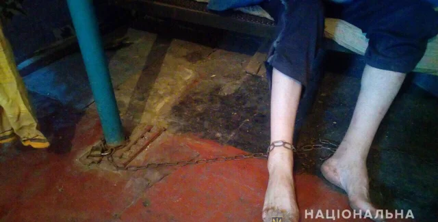 Полицейские Днепропетровской области освободили 36-летнего мужчину, которого держала на цепи собственная мать.