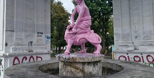 В ночь на 4 сентября неизвестные раскрасили местную киевскую достопримечательность – фонтан "Самсон" – в розовый цвет. Фокус интересовался, что грозит художникам и кто будет заниматься реставрацией фонтана