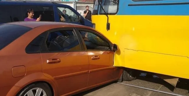 В среду, 11 сентября, в Киеве на Карельском переулке произошло дорожно-транспортное происшествие с участием автомобиля Chevrolet и трамвая.