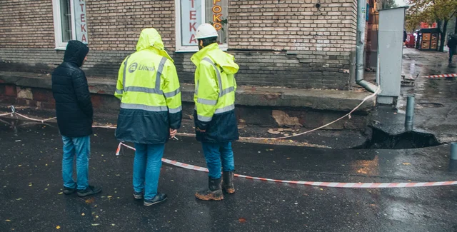 Из-за строительства метро и обильных дождей образовалась дыра шириной в 3 метра