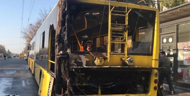 В Киеве в четверг, 17 октября, на остановке общественного транспорта сгорел троллейбус. Об этом сообщается в паблике dtp.kiev.ua в Facebook.