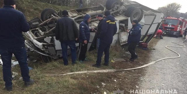 Отмечается, что автобус по маршруту Залесье-1-Каменец-Подольский съехал в кювет и перевернулся. 31-летний водитель и 7 пассажиров автобуса получили телесные повреждения различной степени тяжести, пострадавших госпитализировали.