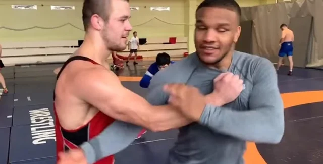 Его спарринг-партнер, чемпион мира 2015 года по греко-римской борьбе среди юниоров в весе до 74 кг Дмитрий Кияшок имитировал нападение со словами: "Ах ты ж, скотыняка", намекая на Олега Ляшко.
