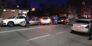 По данным издания, на этом месте происходила спецоперация силовиков по задержанию злоумышленников. Водитель Land Cruiser оказал сопротивление и протаранил 10 автомобилей, чтобы скрыться от погони.