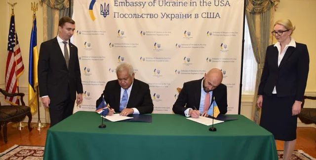 Отмечается, что документ был подписан временным поверенным в делах Украины в США Андреем Ваневским и послом Маршалловых островов в США Джеральдом Закиосом.